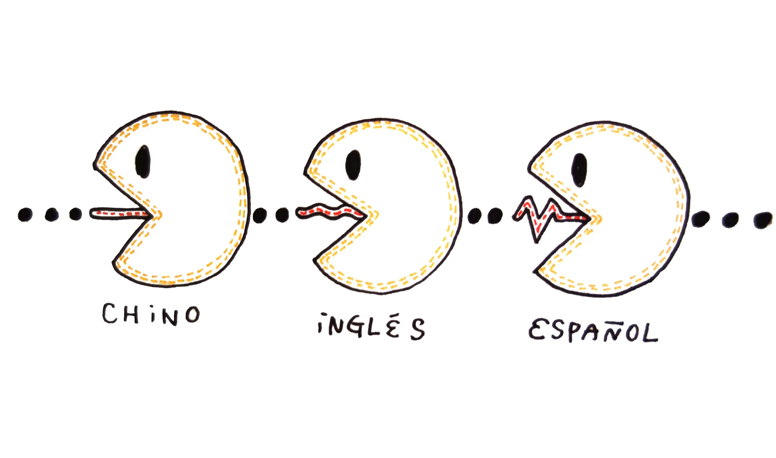 剛開始學西文時隨手畫的圖:中文的舌頭很平板 英文的舌頭很柔軟 西文的舌頭很動感